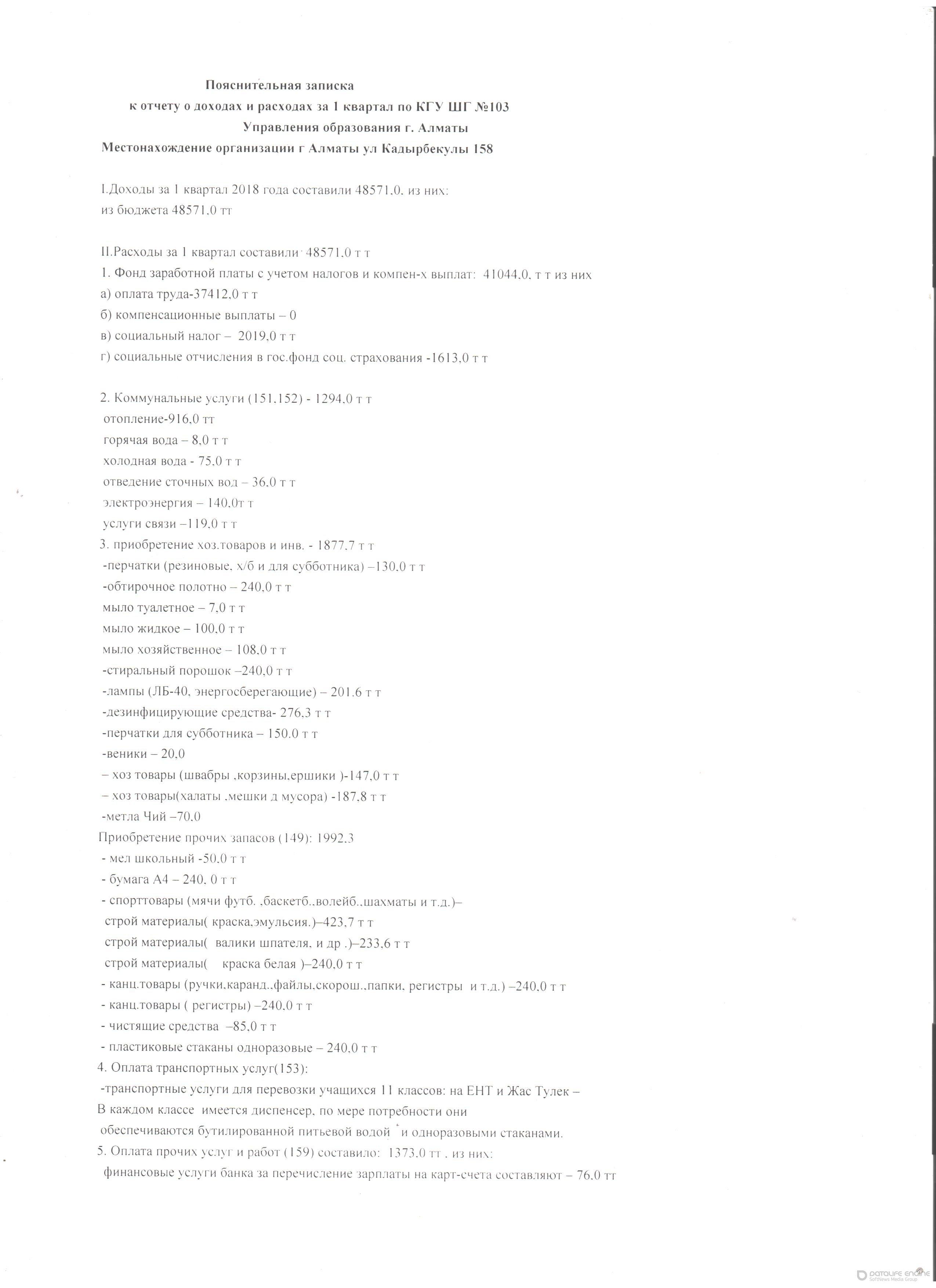 Финансирование » КГУ "Школа-гимназия №103" Управления образования г.Алматы