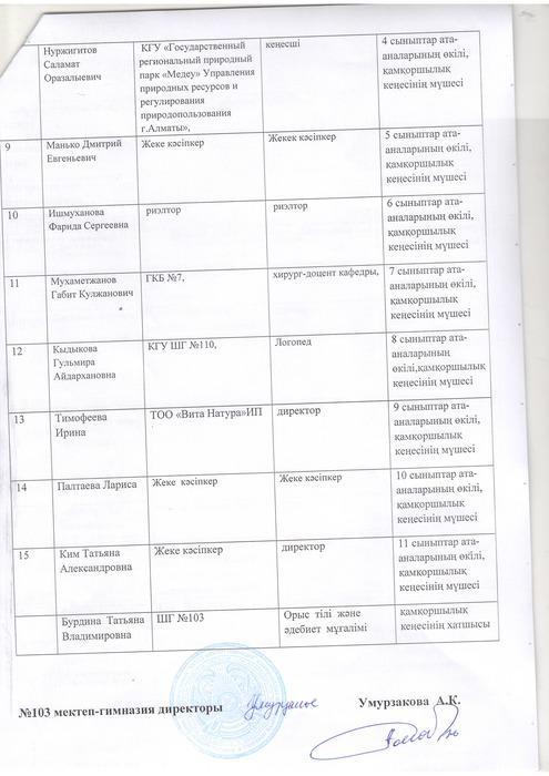 "Қамқоршылық кеңес" құрамы 2020-2021 оқу жылы » КГУ "Школа-гимназия №103" Управления образования г.Алматы