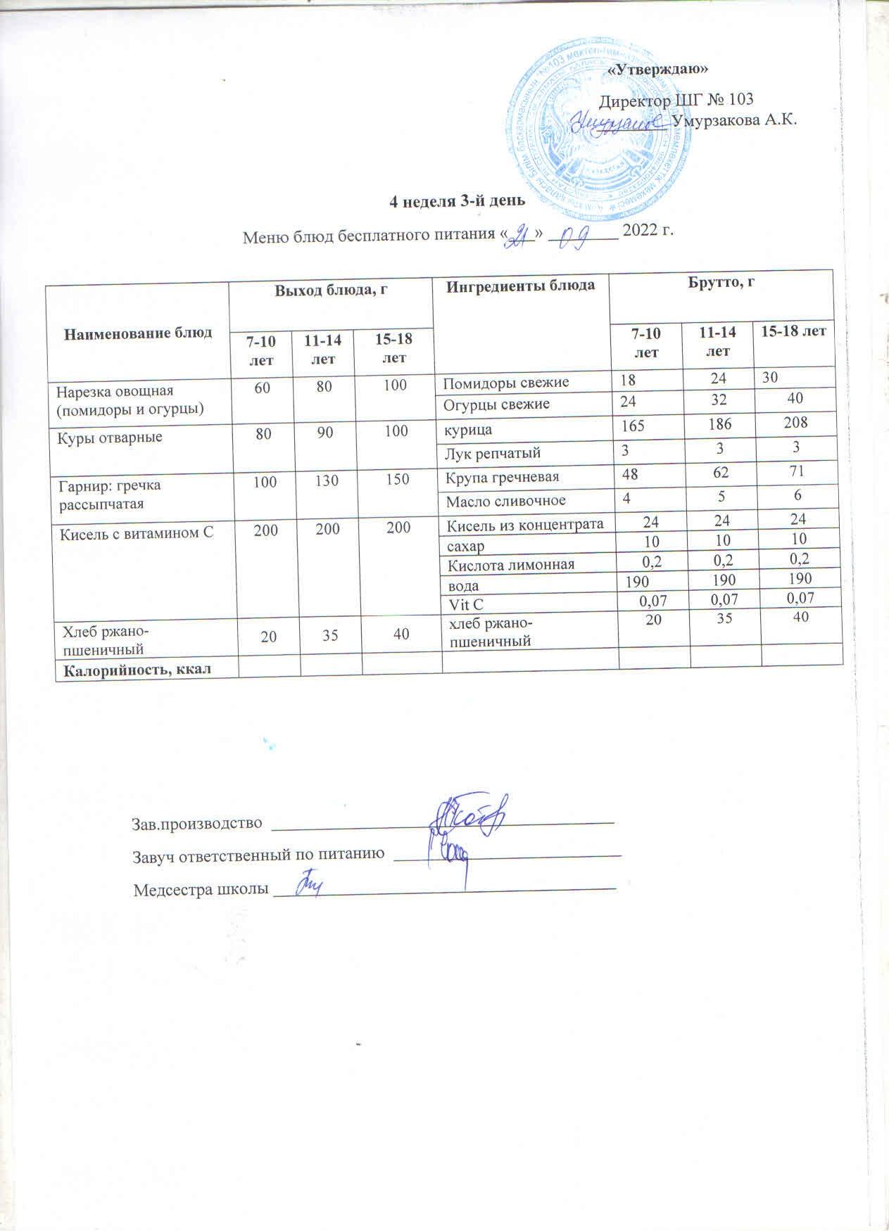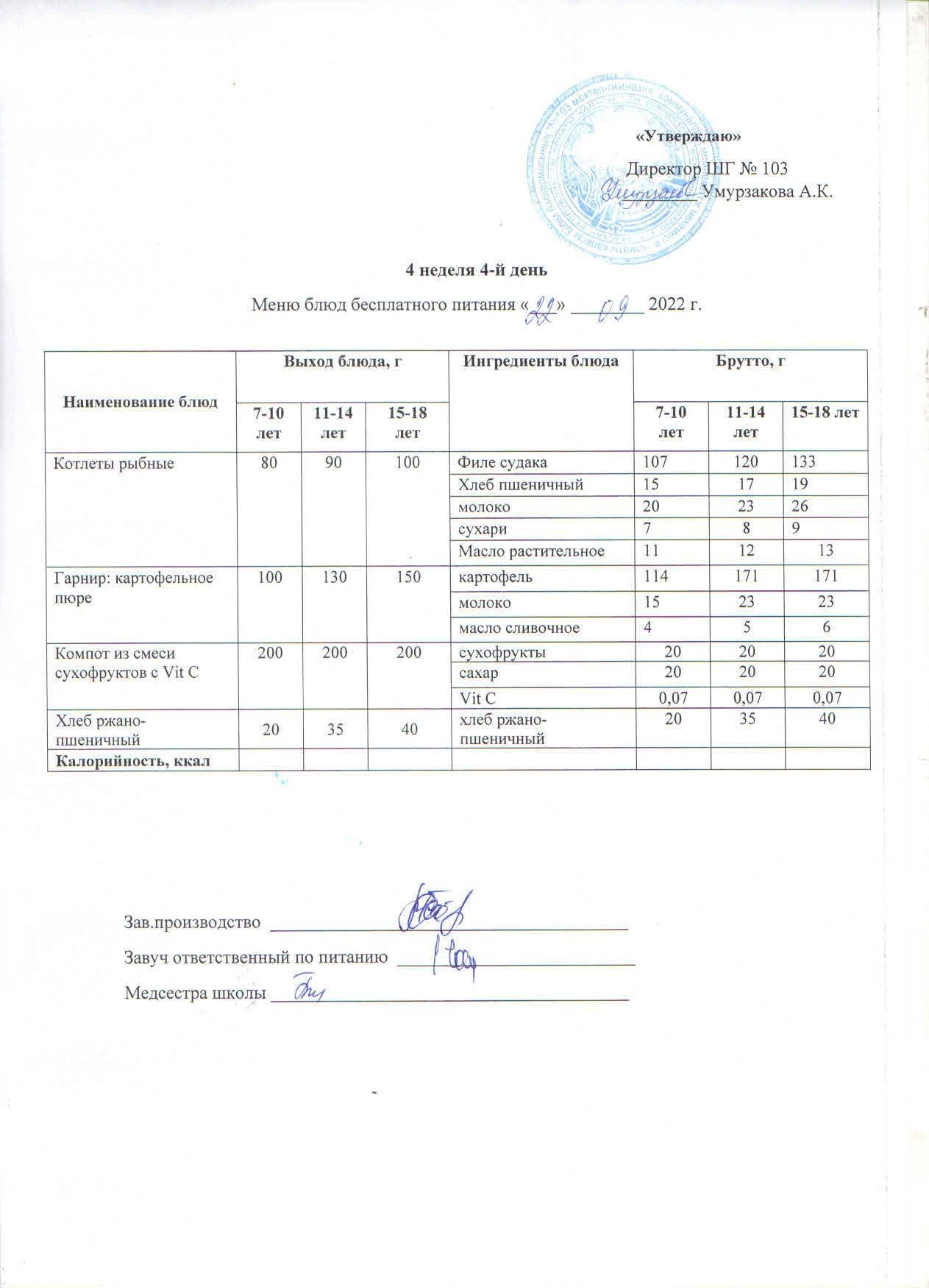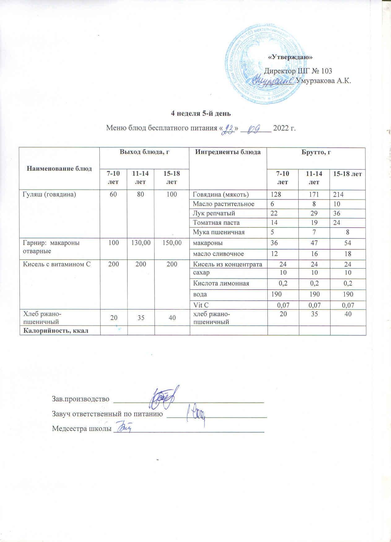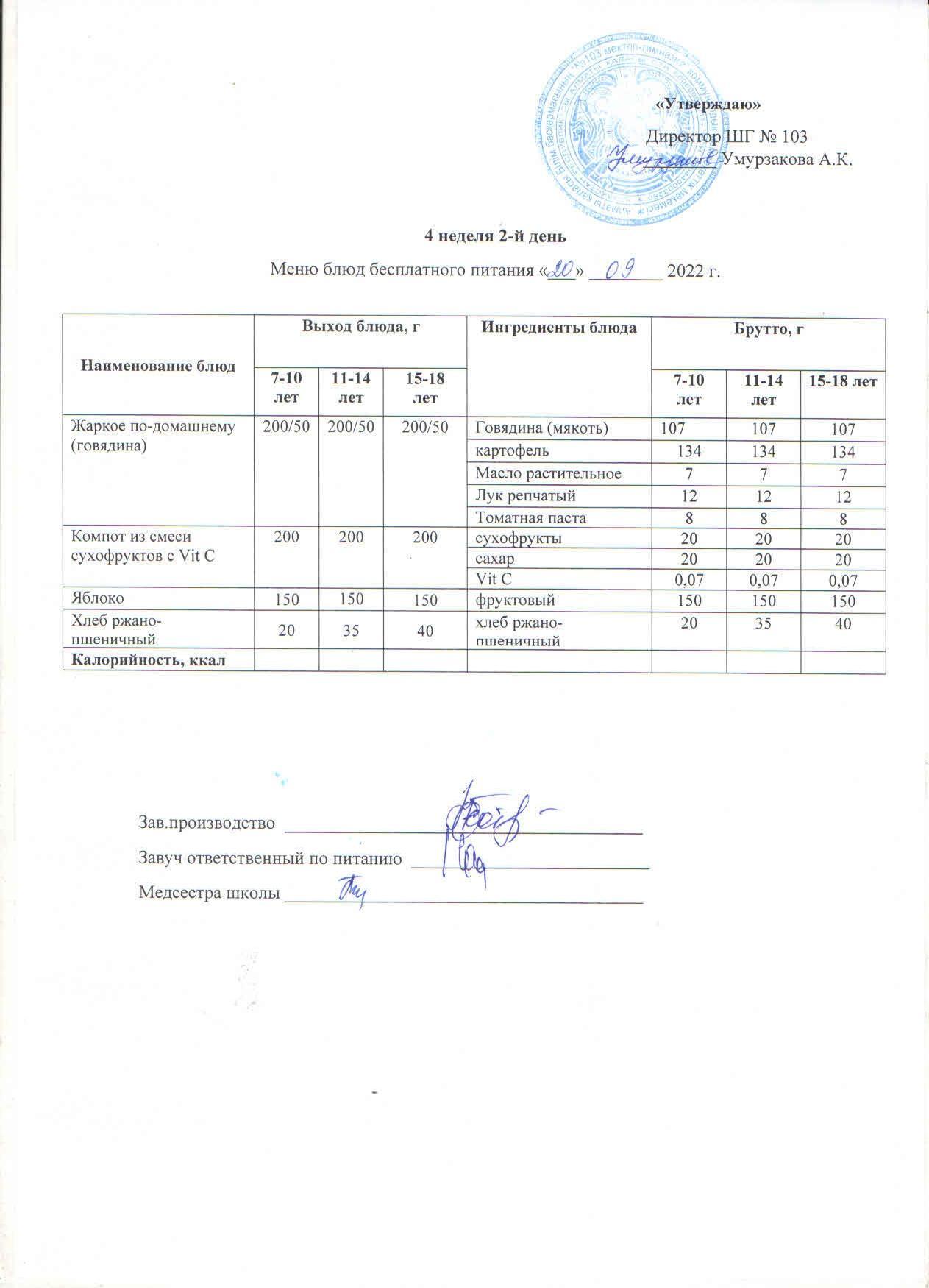 1 апталық ас мәзірі » КГУ "Школа-гимназия №103" Управления образования г.Алматы