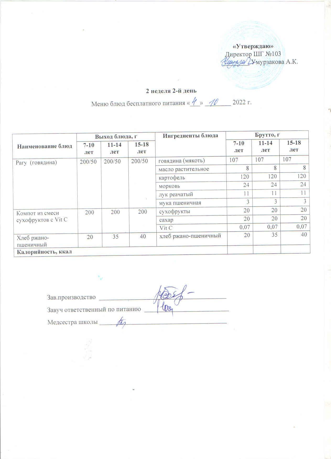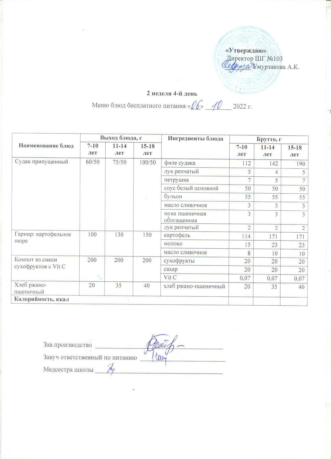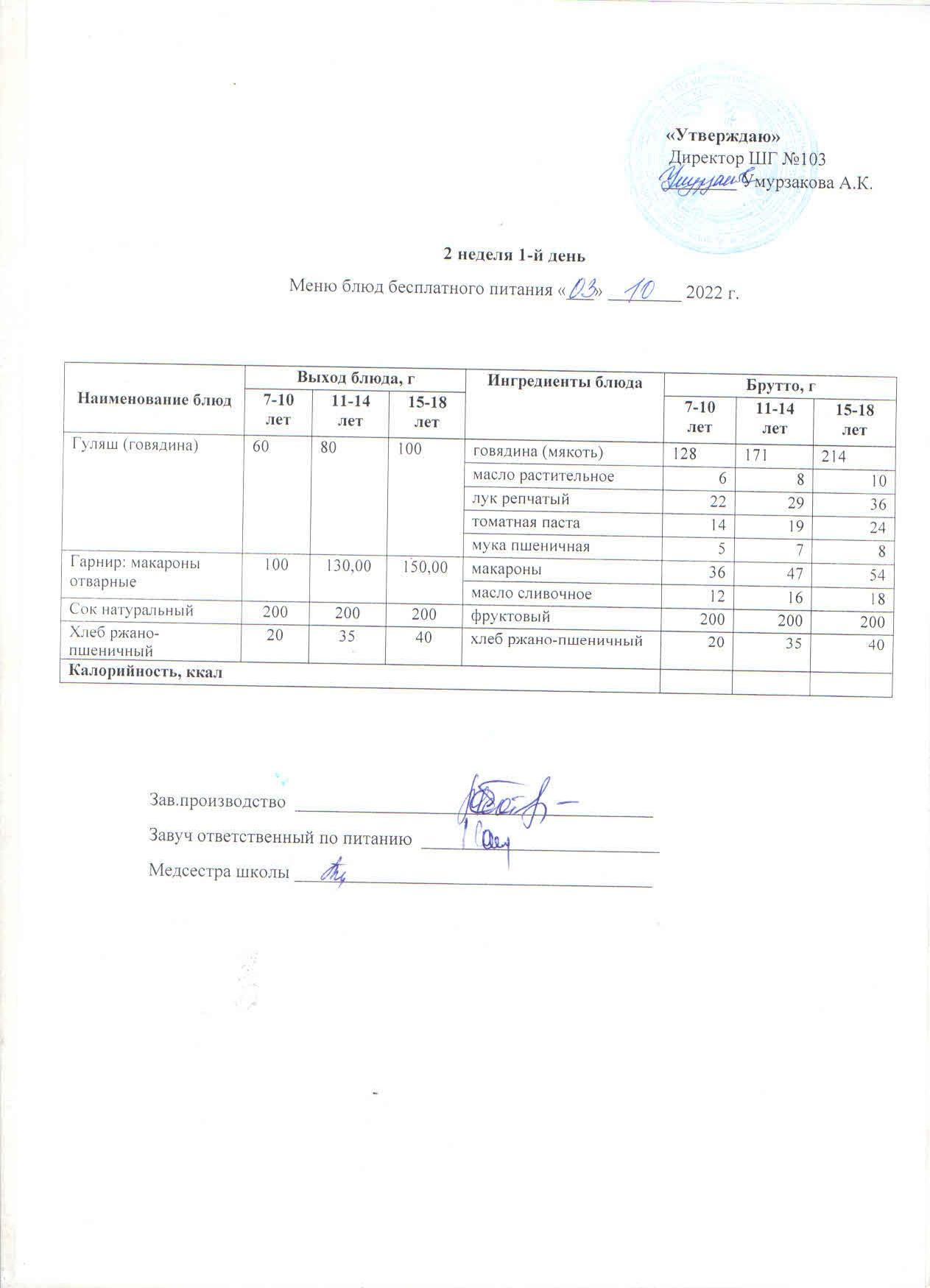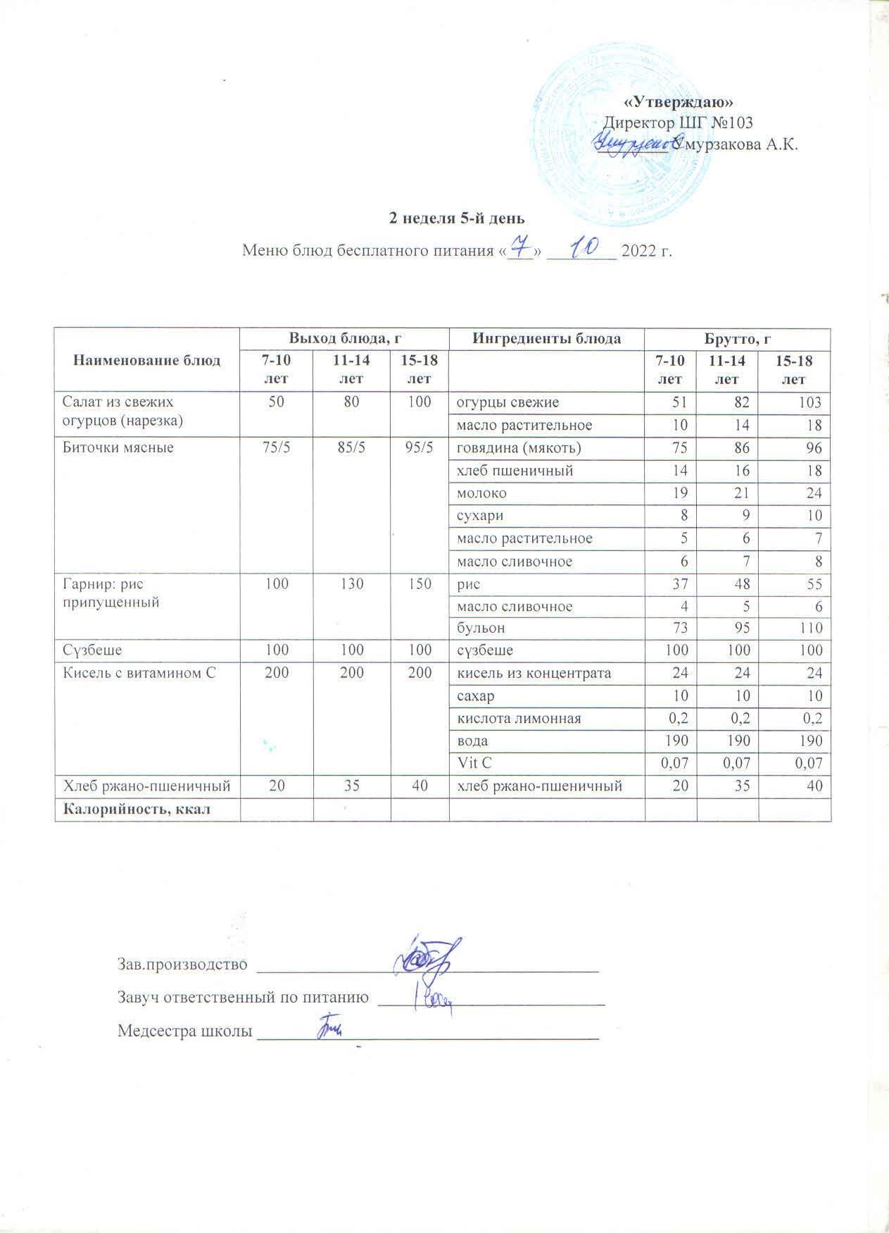 1 апталық ас мәзірі » КГУ "Школа-гимназия №103" Управления образования г.Алматы