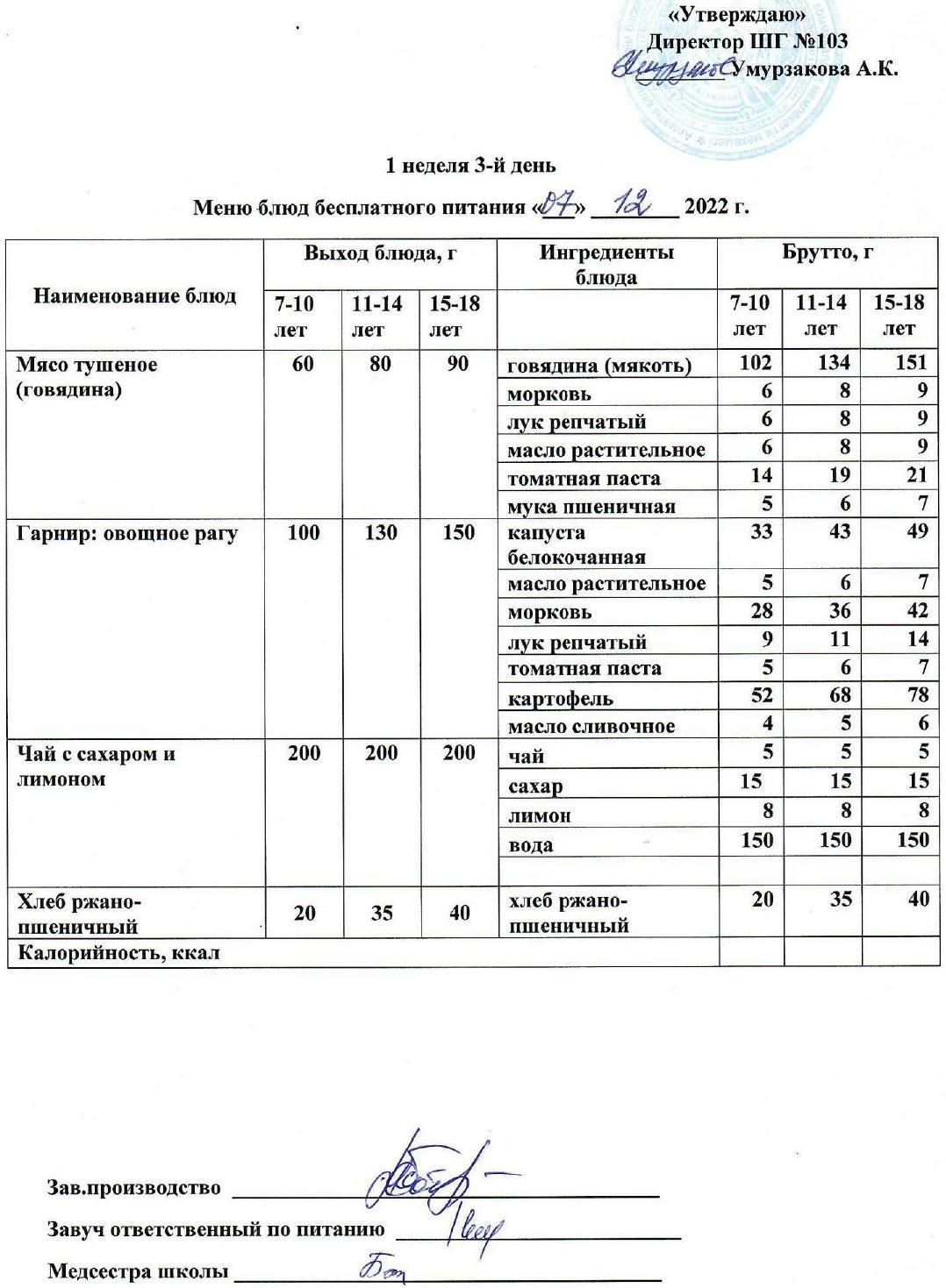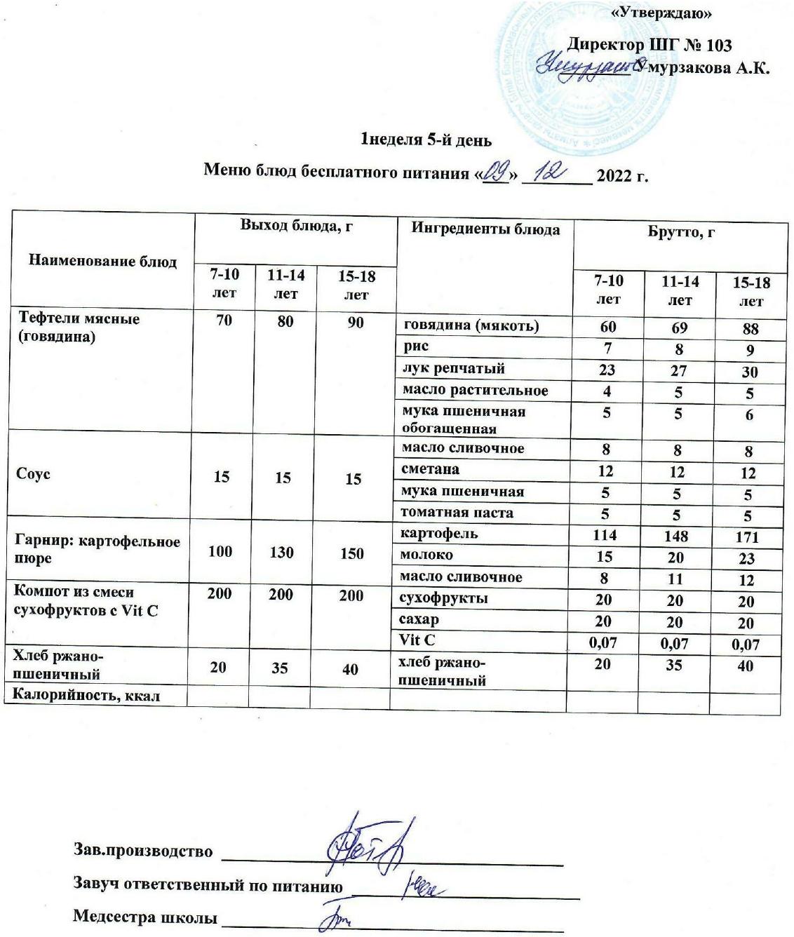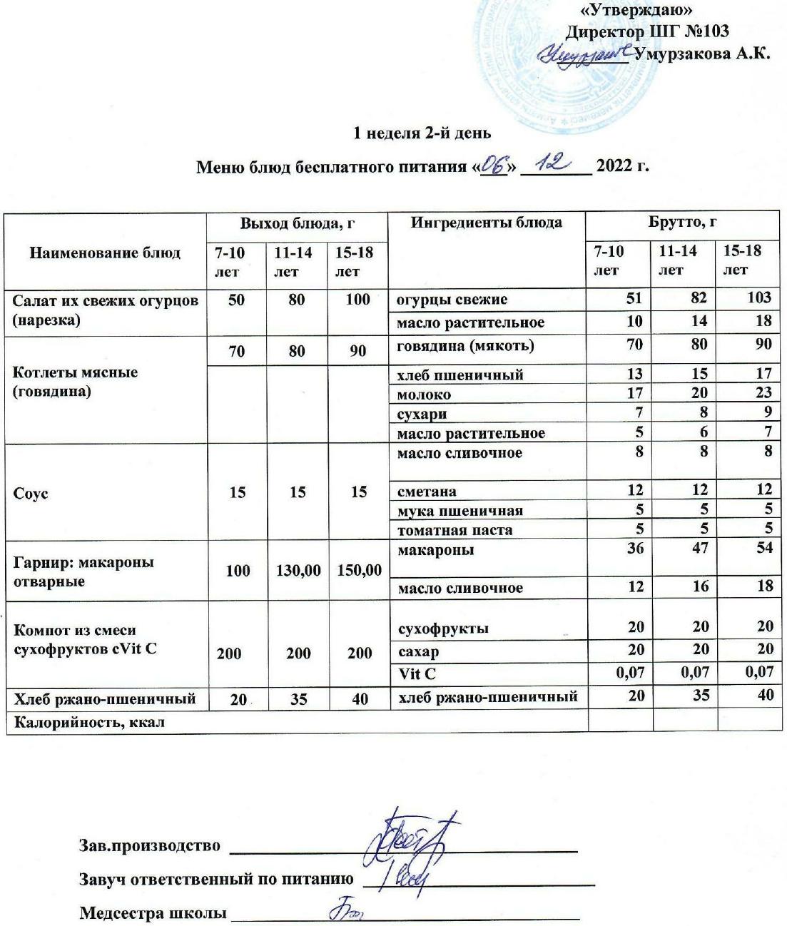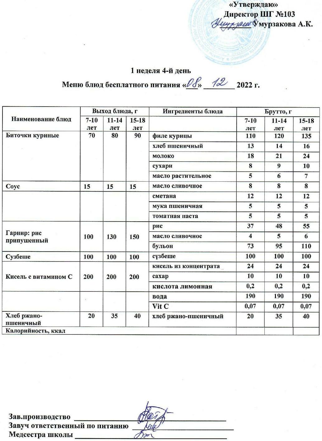 1 апталық ас мәзірі » КГУ "Школа-гимназия №103" Управления образования г.Алматы