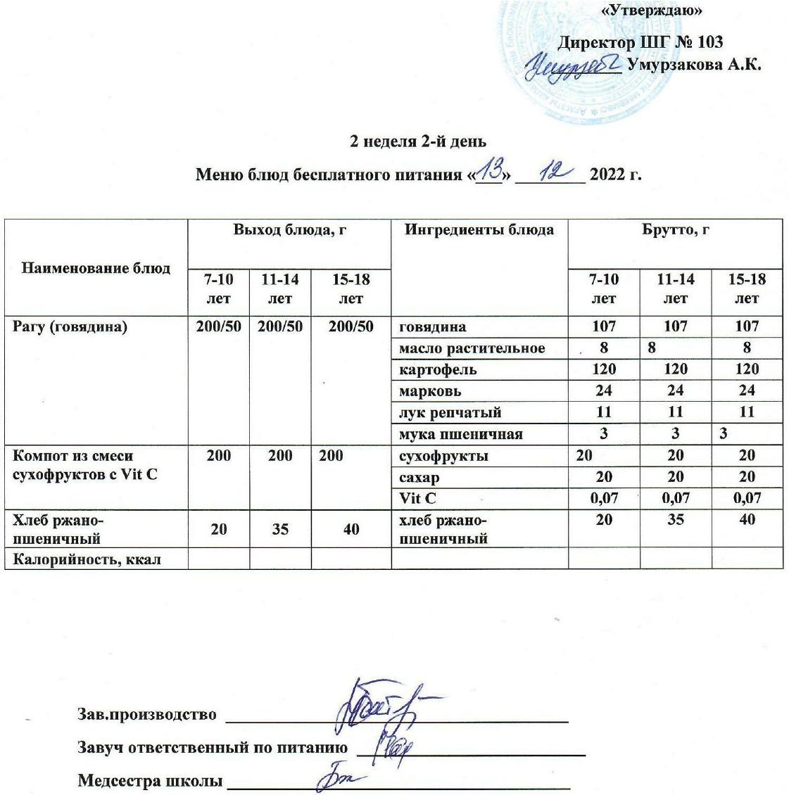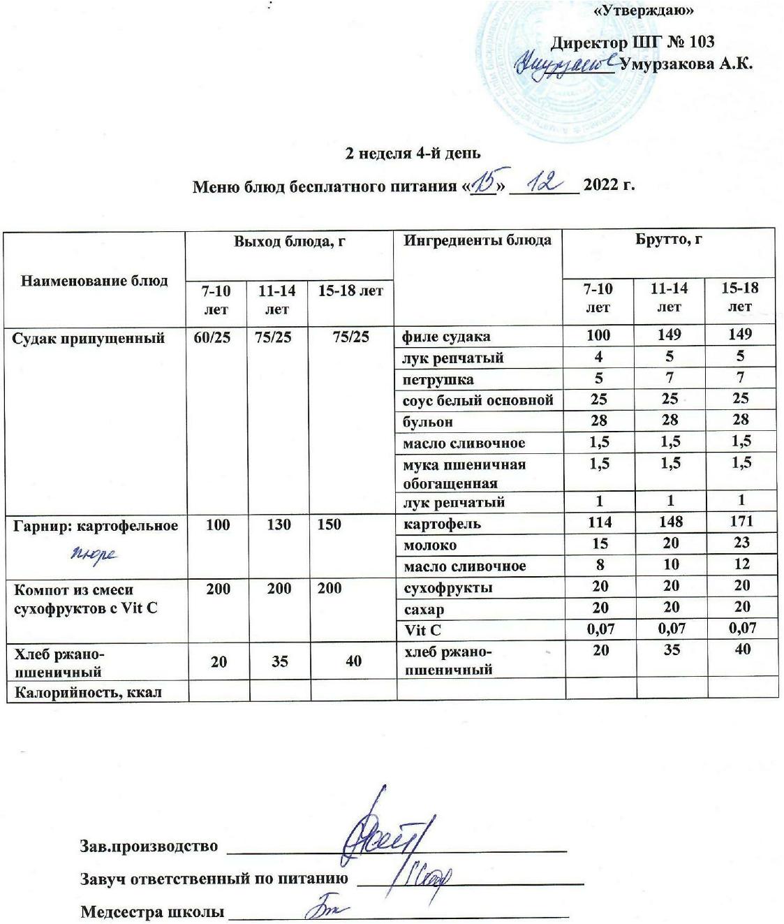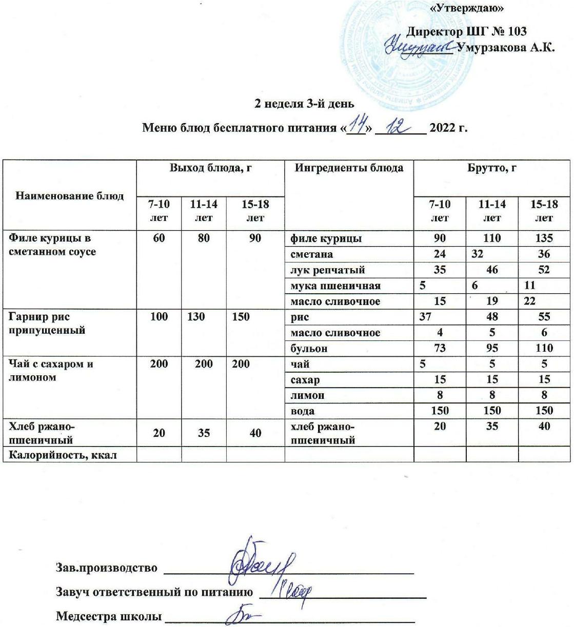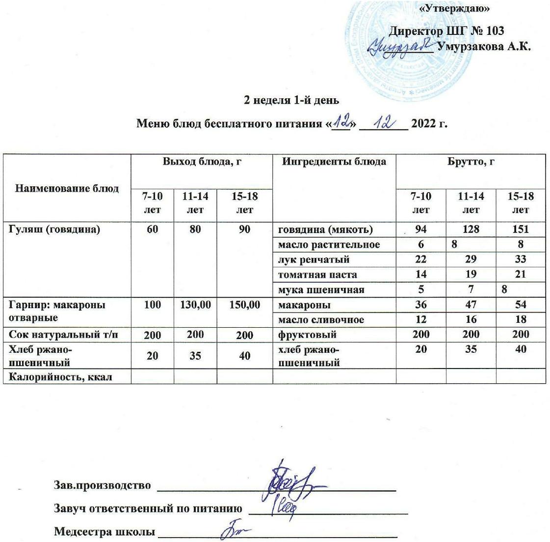 1 апталық ас мәзірі » КГУ "Школа-гимназия №103" Управления образования г.Алматы