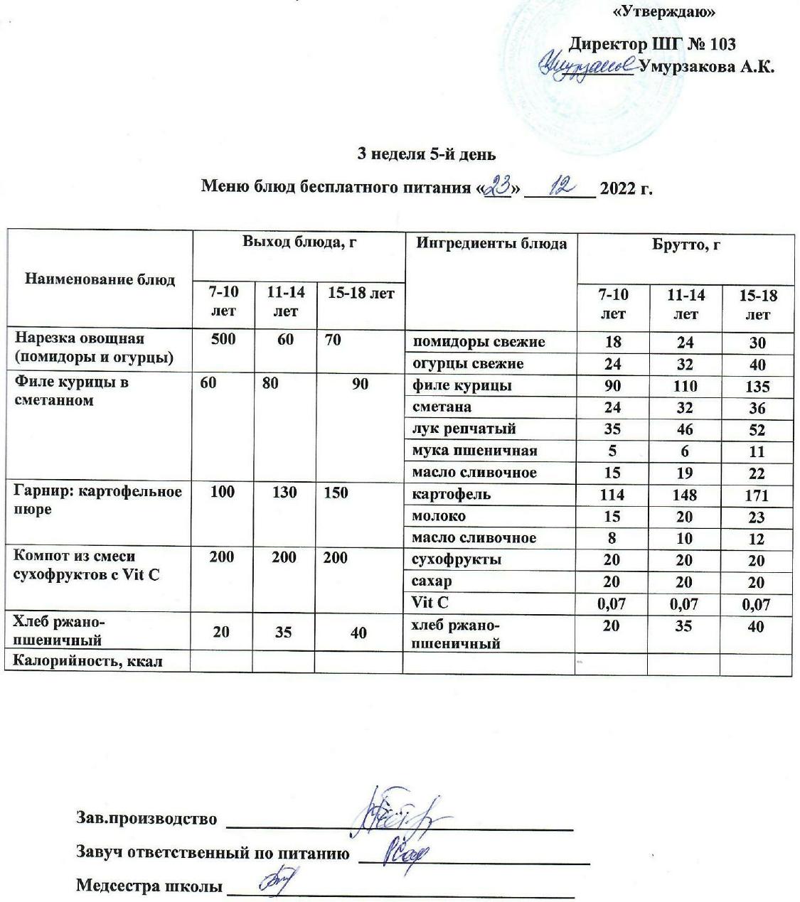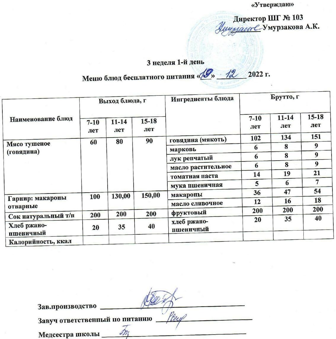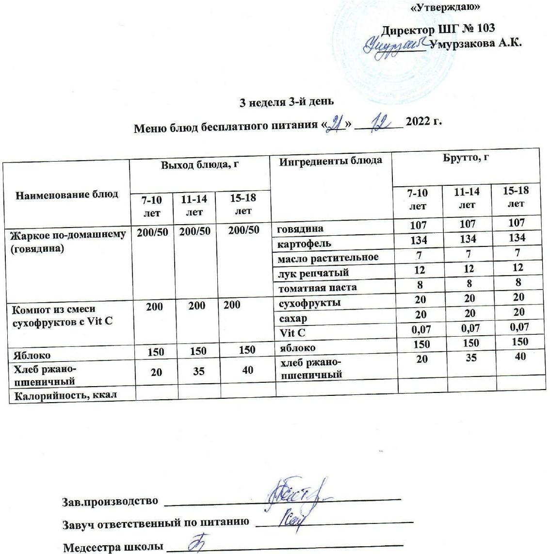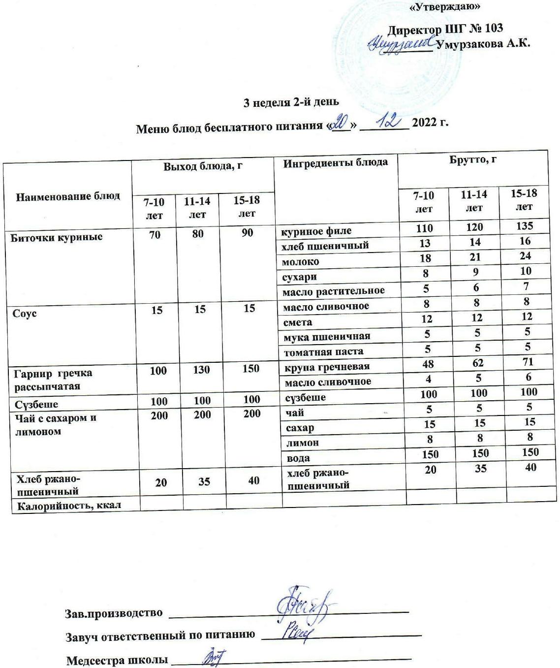 1 апталық ас мәзірі » КГУ "Школа-гимназия №103" Управления образования г.Алматы