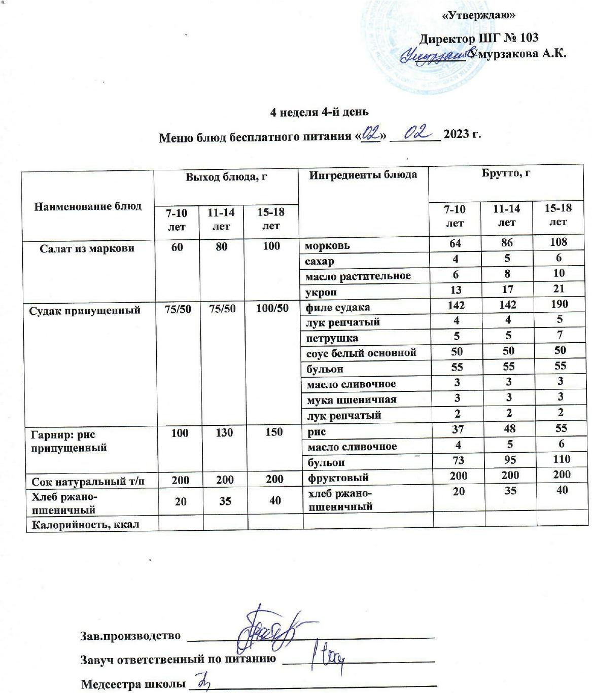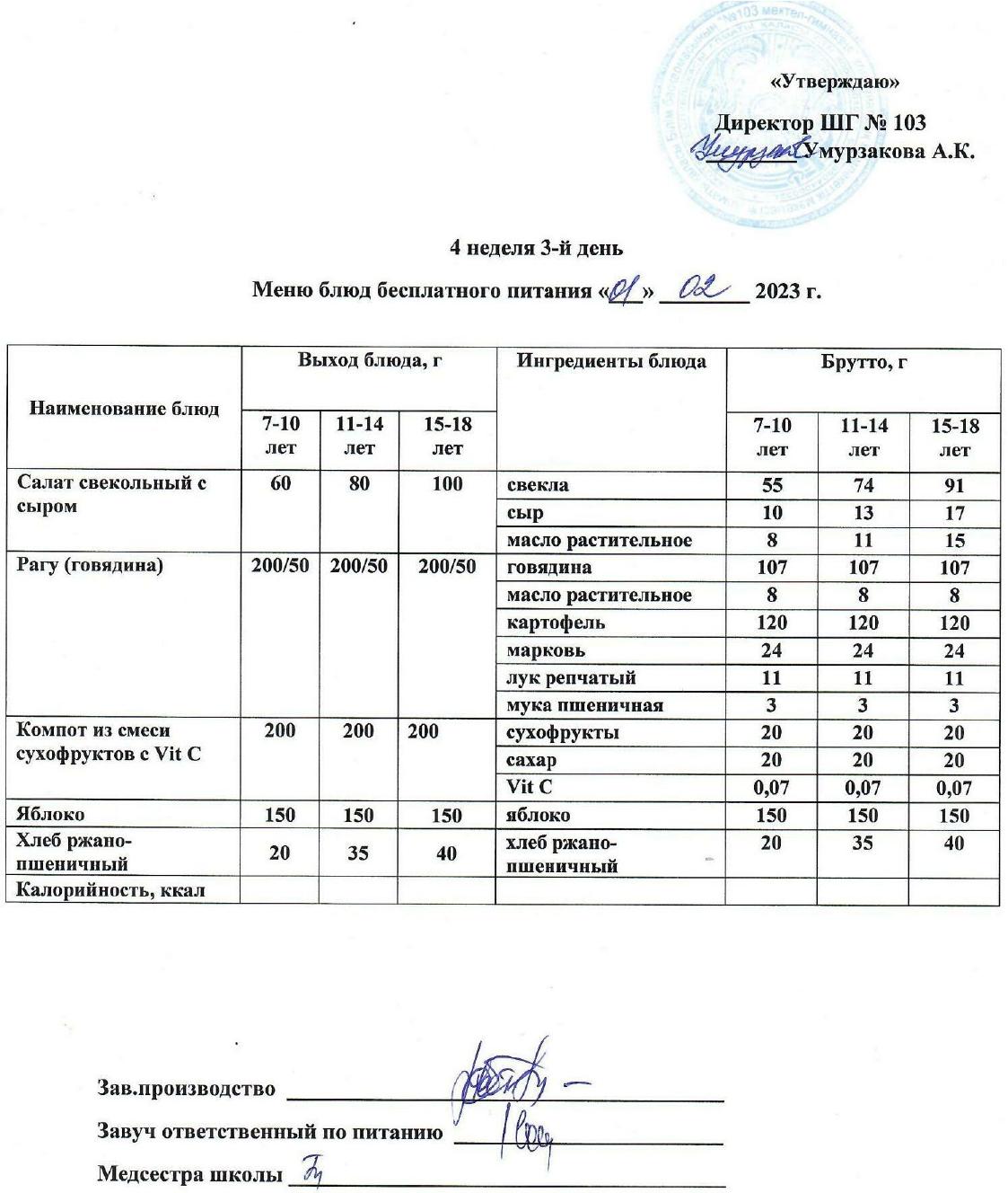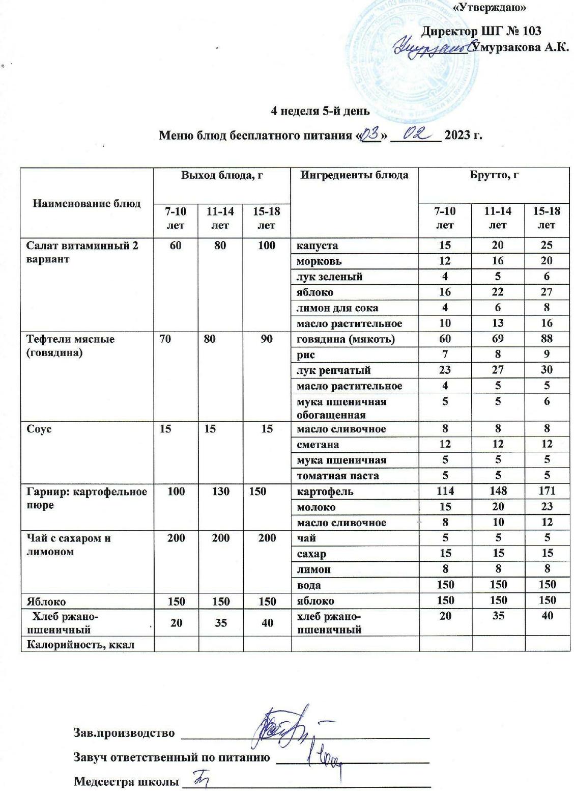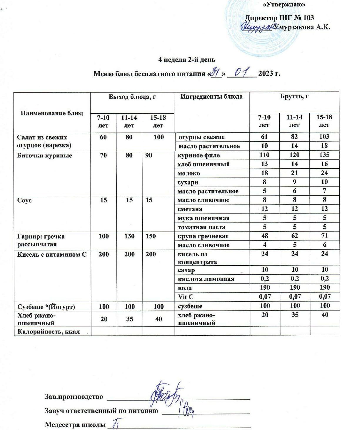 1 апталық ас мәзірі » КГУ "Школа-гимназия №103" Управления образования г.Алматы