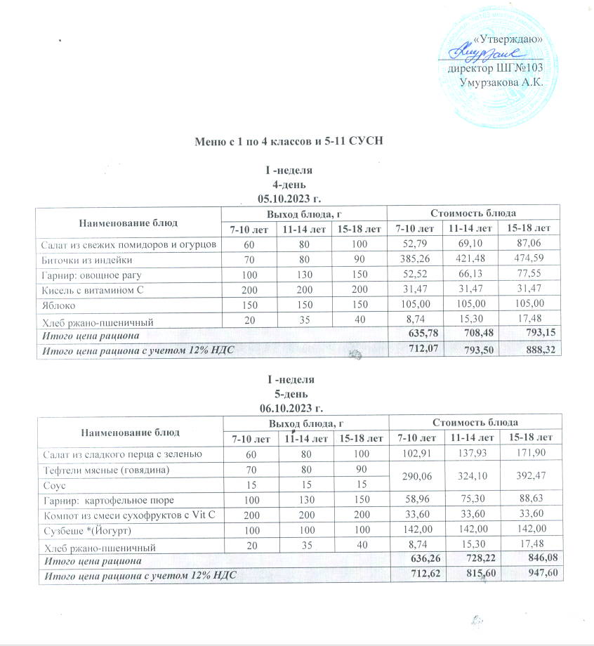 Ас мәзірі 06.10.2023 » КГУ "Школа-гимназия №103" Управления образования г.Алматы