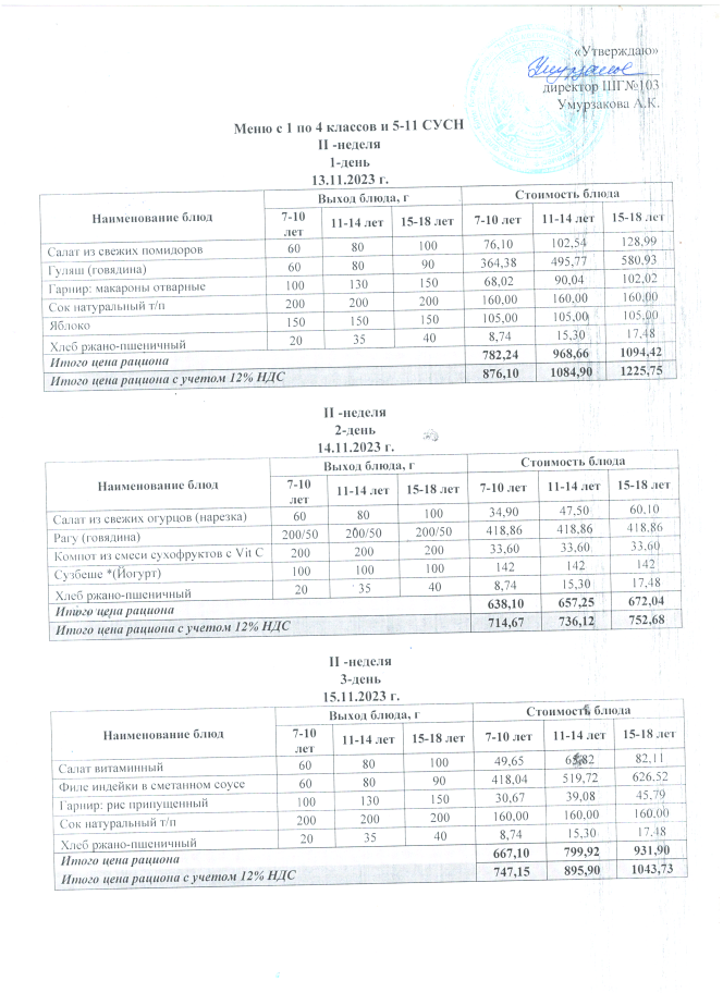 11 қазан 2023 Ас мәзірі