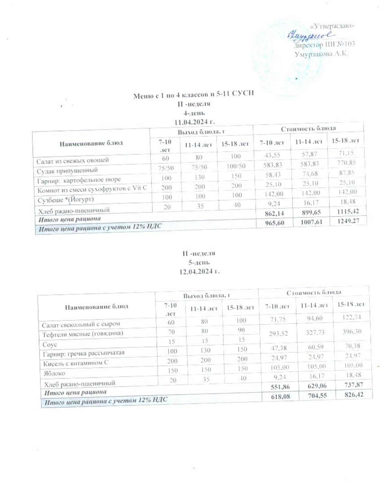 1 апталық ас мәзірі » КГУ "Школа-гимназия №103" Управления образования г.Алматы