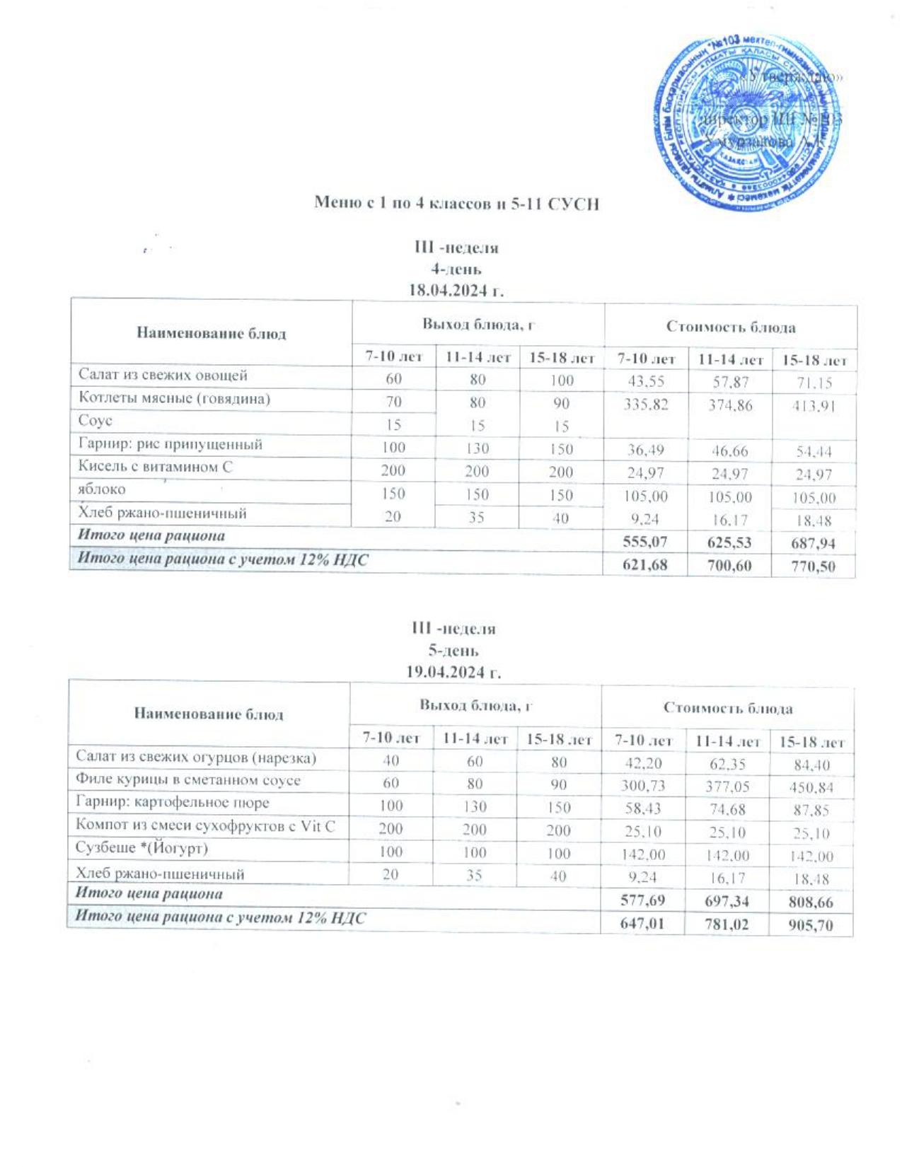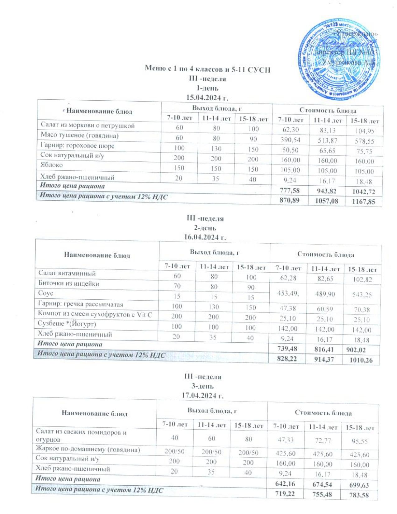 1 апталық ас мәзірі » КГУ "Школа-гимназия №103" Управления образования г.Алматы