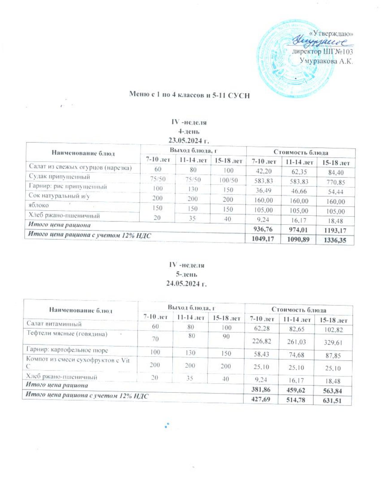 1 апталық ас мәзірі » КГУ "Школа-гимназия №103" Управления образования г.Алматы