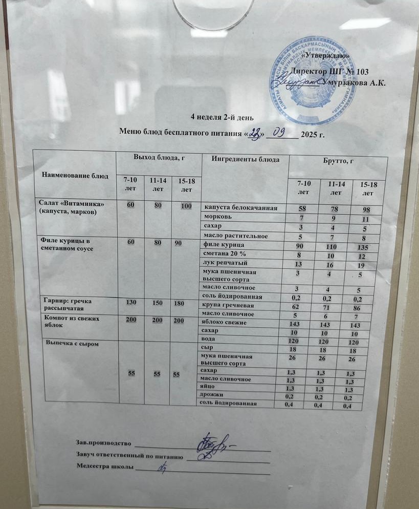 Сейсенбілік ас мәзірі, бақылау тамағы 23.09.2025 ж » КГУ "Школа-гимназия №103" Управления образования г.Алматы