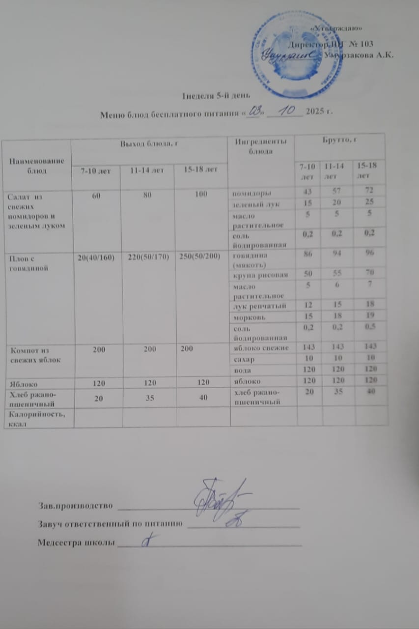 03.10.2025 жыл ас мәзірі, бақылау тамағы » КГУ "Школа-гимназия №103" Управления образования г.Алматы