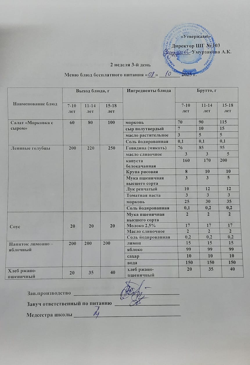 08.10.2025 жыл ас мәзірі, бақылау тамағы » КГУ "Школа-гимназия №103" Управления образования г.Алматы