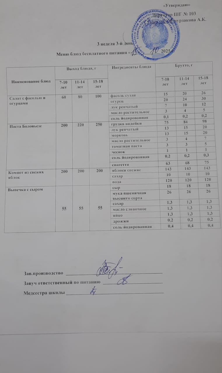 15.10.2025 жыл Ас мәзірі, бақылау тамағы » КГУ "Школа-гимназия №103" Управления образования г.Алматы