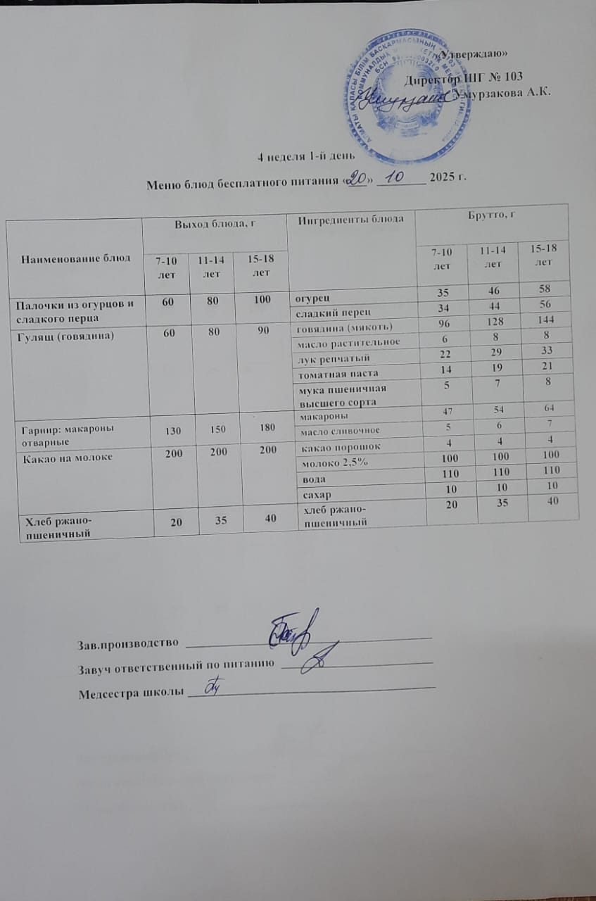 20.10.2025 жыл ас мәзірі, бақылау тамағы » КГУ "Школа-гимназия №103" Управления образования г.Алматы