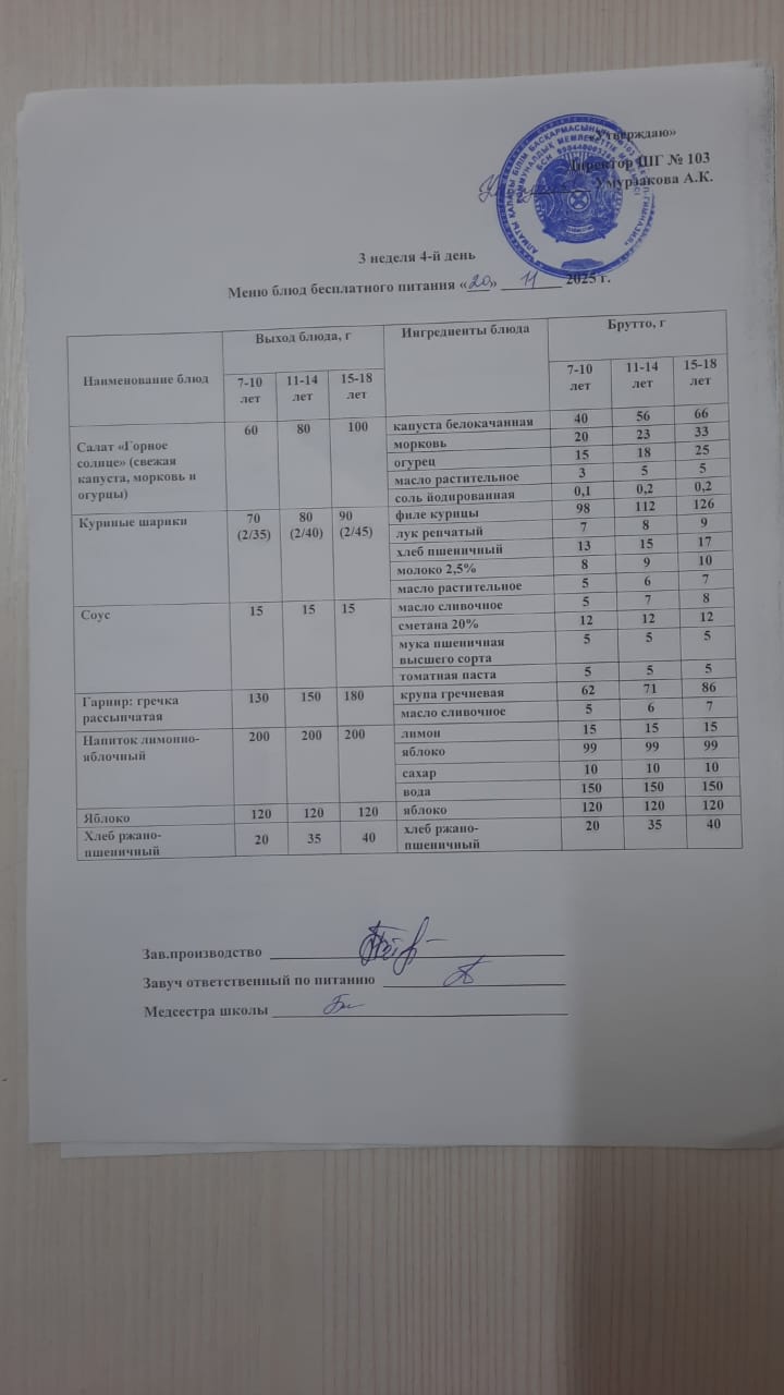 КҮНДЕЛІКТІ АС МӘЗІРІ/ ЕЖЕДНЕВНОЕ МЕНЮ » КГУ "Школа-гимназия №103" Управления образования г.Алматы