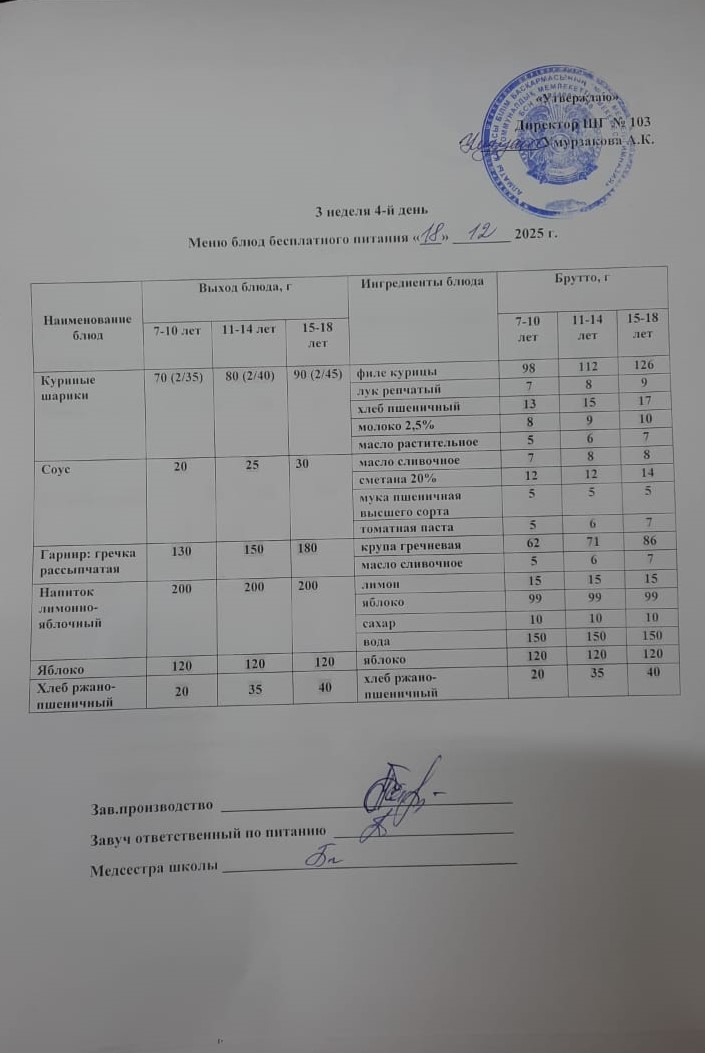 КҮНДЕЛІКТІ АС МӘЗІРІ/ ЕЖЕДНЕВНОЕ МЕНЮ » КГУ "Школа-гимназия №103" Управления образования г.Алматы