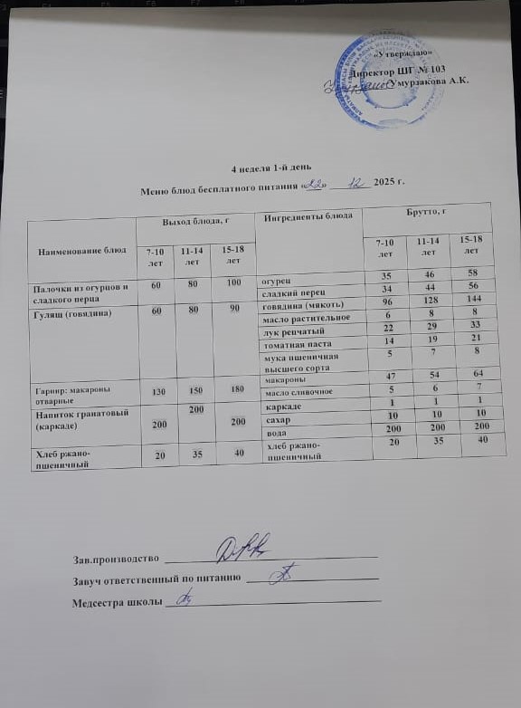 КҮНДЕЛІКТІ АС МӘЗІРІ/ ЕЖЕДНЕВНОЕ МЕНЮ » КГУ "Школа-гимназия №103" Управления образования г.Алматы