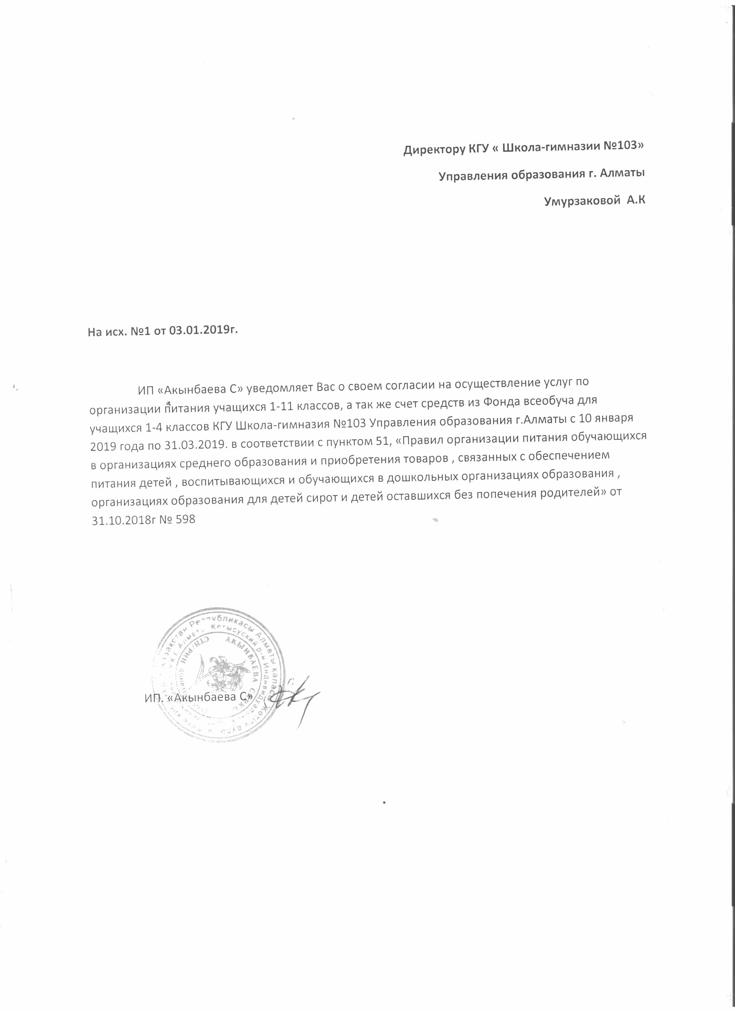 ИП "Акынбаева С" » КГУ "Школа-гимназия №103" Управления образования г.Алматы