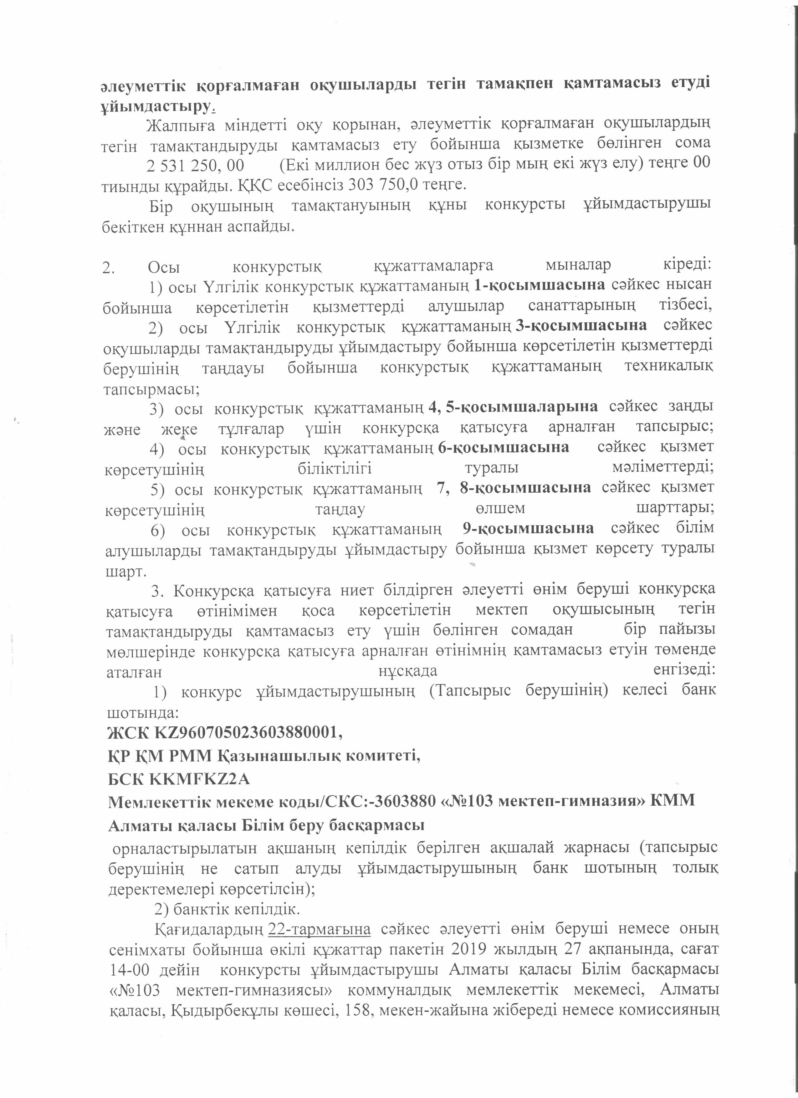 2-қосымшасы. Үлгілік конкурстық құжаттама » КГУ "Школа-гимназия №103" Управления образования г.Алматы
