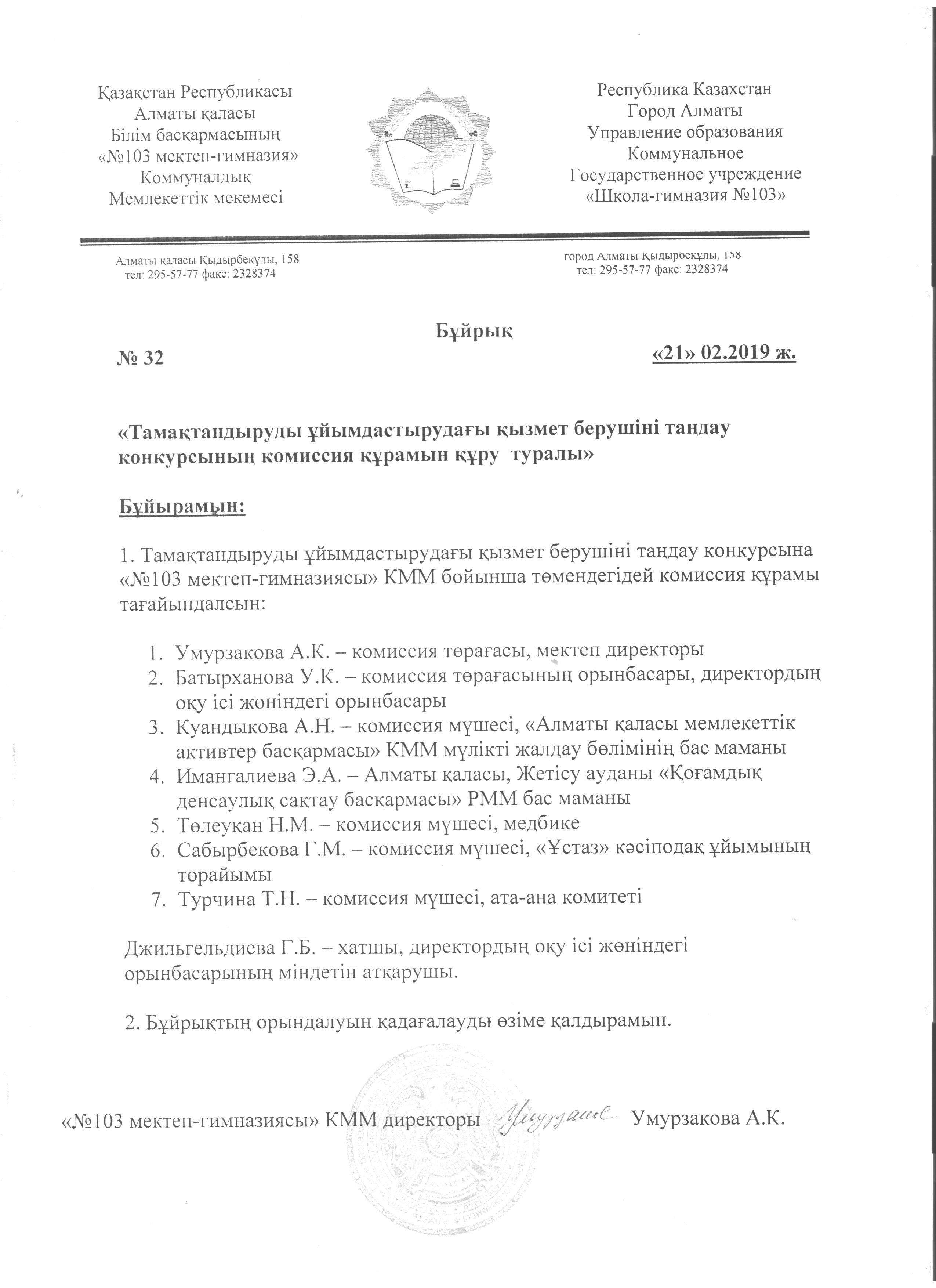Бұйрық » КГУ "Школа-гимназия №103" Управления образования г.Алматы