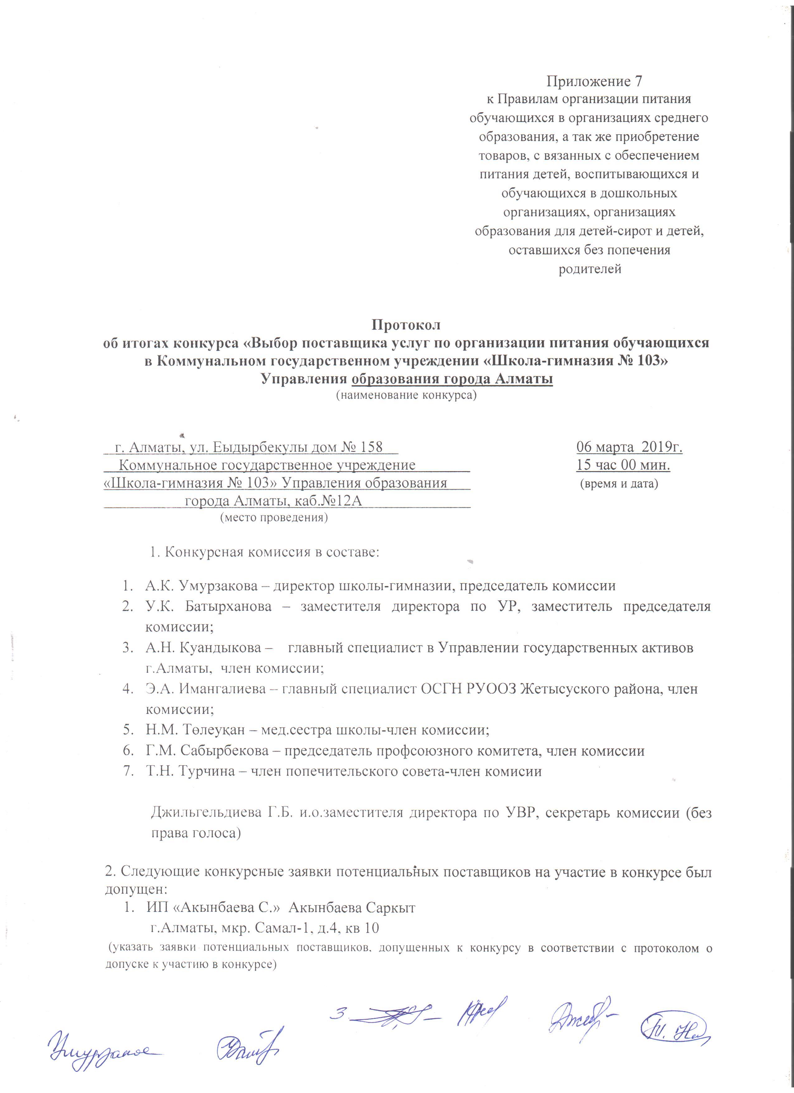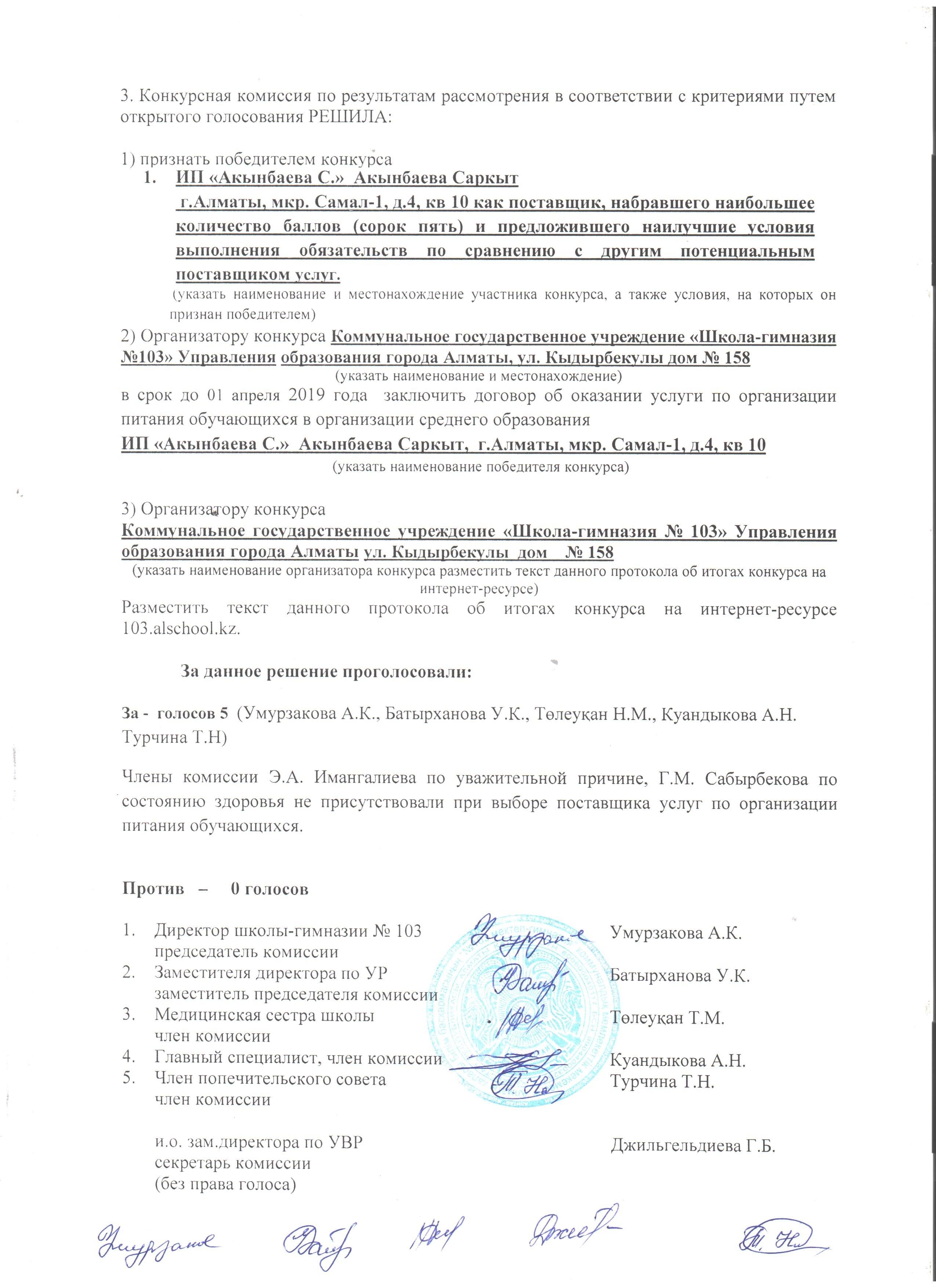 Протокол об итогах конкурса » КГУ "Школа-гимназия №103" Управления образования г.Алматы